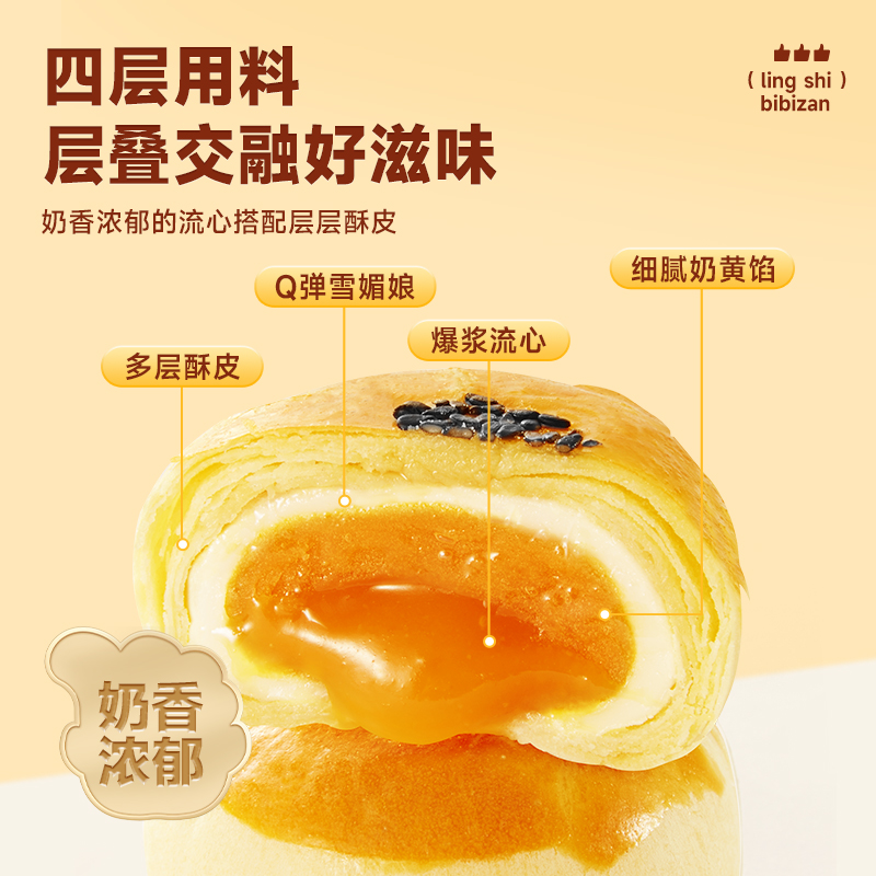 比比赞奶黄芝士流心酥蛋黄酥雪媚娘面包整箱早餐零食休闲小吃SW