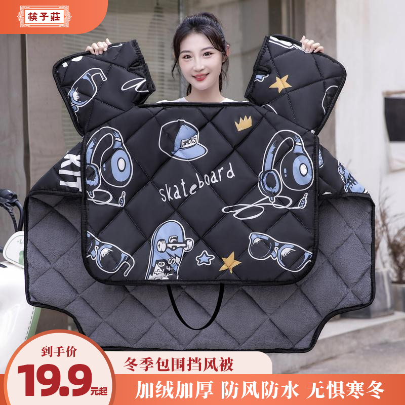电动车冬季挡风被加厚保暖双面防水反光电动车防风被升级加绒通用