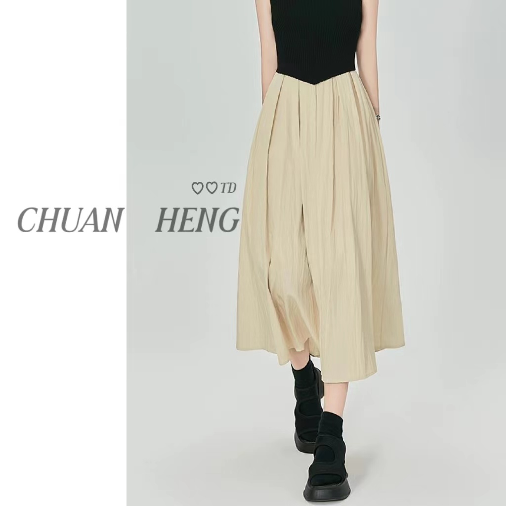 山本裙裤女休闲阔腿裤裙时尚气质百褶显瘦半身裙(裙长80左右)