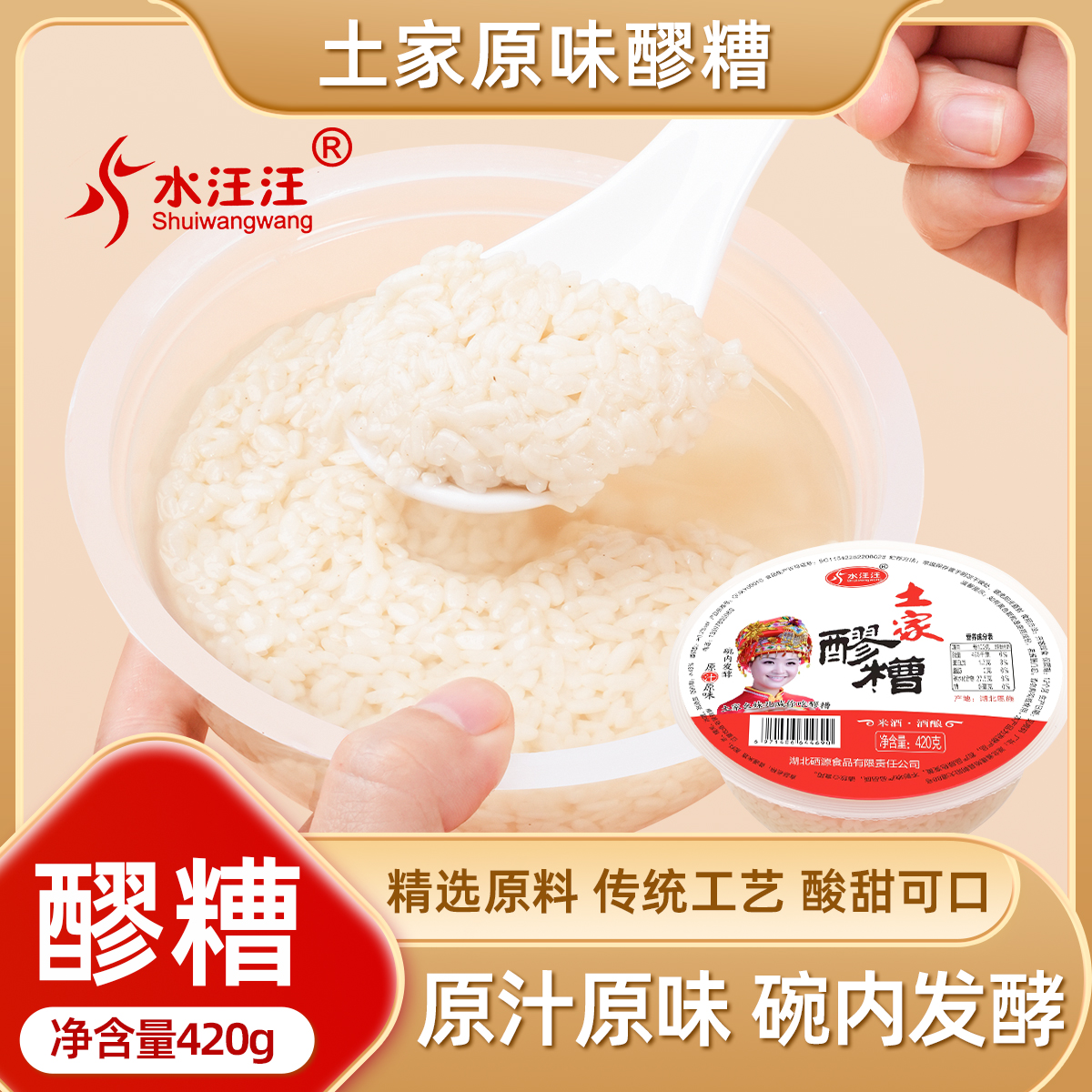水汪汪发酵米酒碗装古法糯米醪糟酒酿420g*6碗即食农家酒糟醪糟