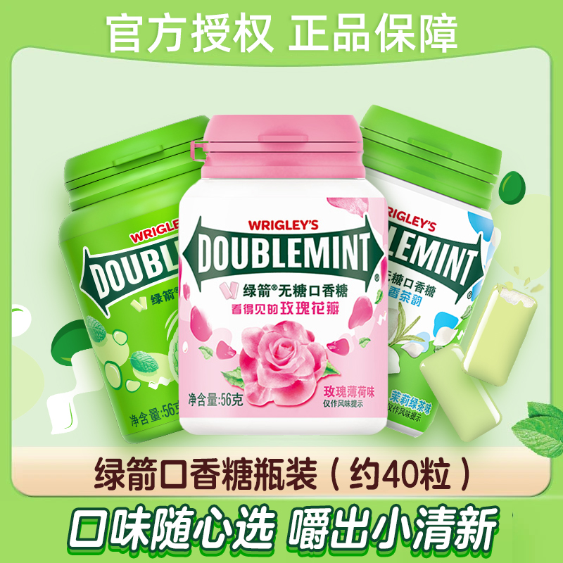 绿箭无糖口香糖56g*3瓶 薄荷味清新口气糖果含片约40粒办公室零食
