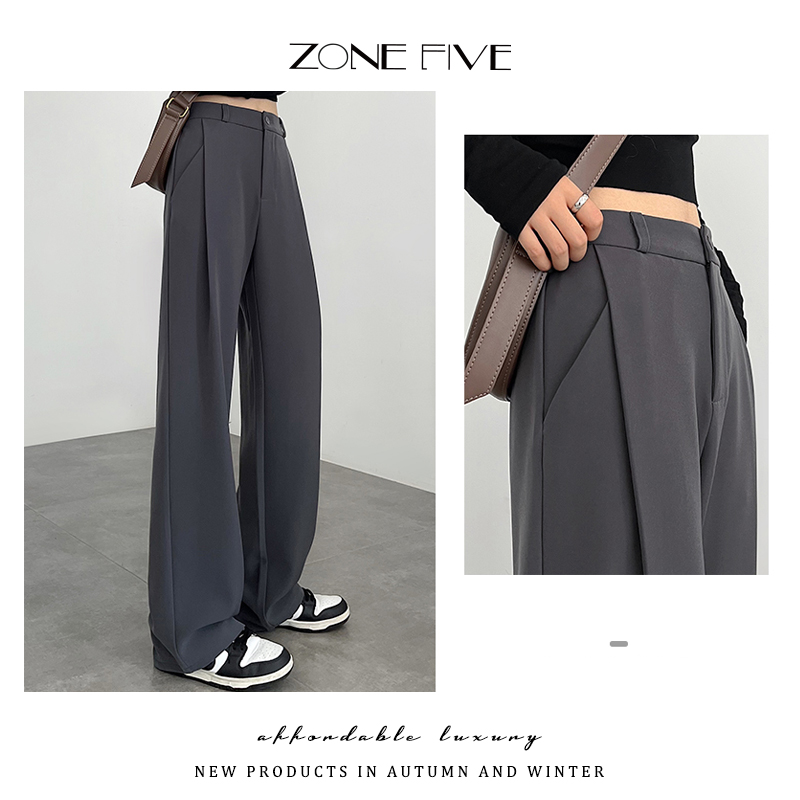 凉感西装裤女夏季薄款2025新款高腰垂感小个子休闲窄版冰丝阔腿裤