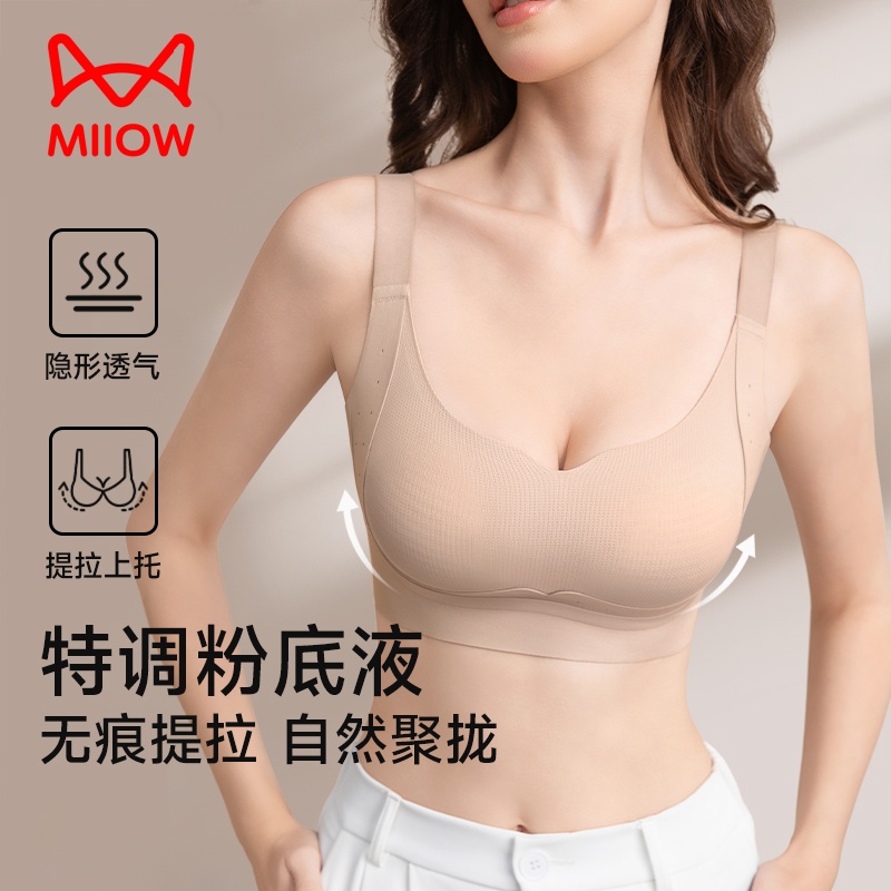 猫人无痕粉底液隐形内衣聚拢调整型上托防下垂大码薄款显胸小文胸
