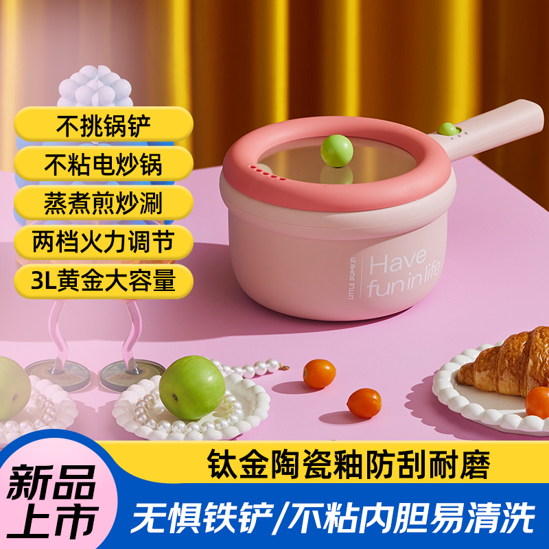 小南瓜电煮锅钛金内胆家用多功能宿舍泡面蒸煮火锅