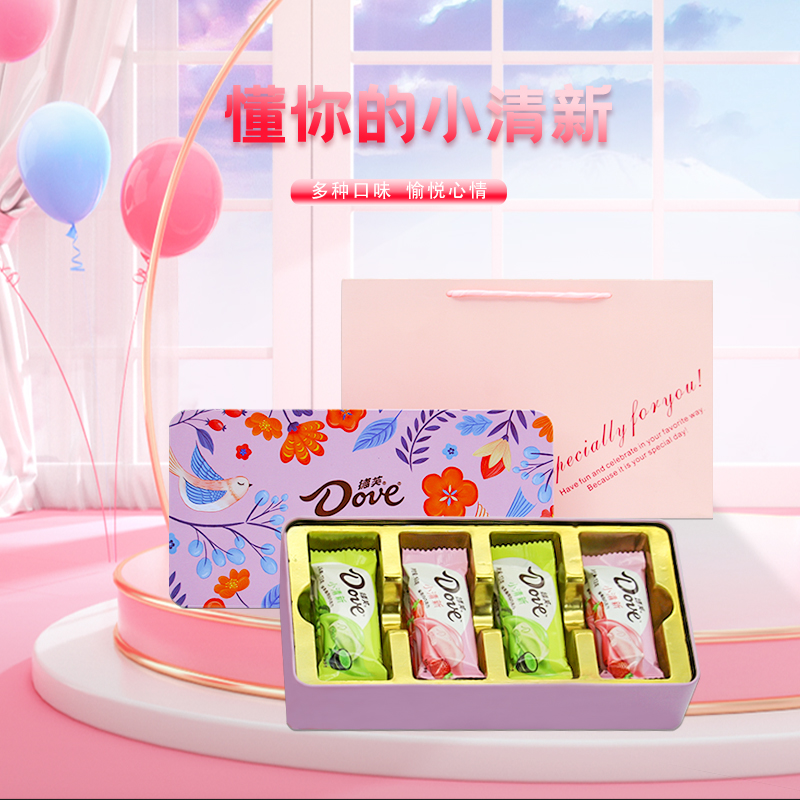 德芙【中秋节礼物】小清新巧克力礼盒丝滑牛奶/草莓/抹茶配手提袋