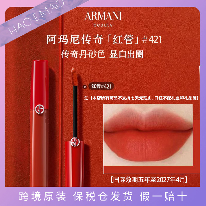 ARMANI/阿玛尼哑光丝绒红管唇釉421#6.5ml丹砂色口红正品黄皮显白