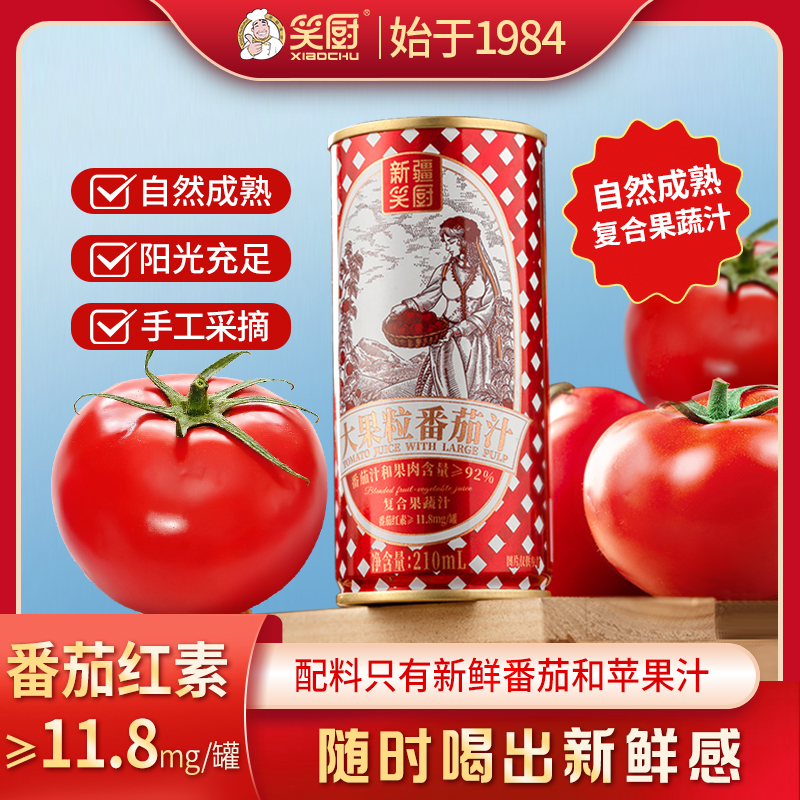 【笑厨】新疆大果粒番茄汁新鲜番茄鲜果饮料营养鲜榨210ml ZJ1