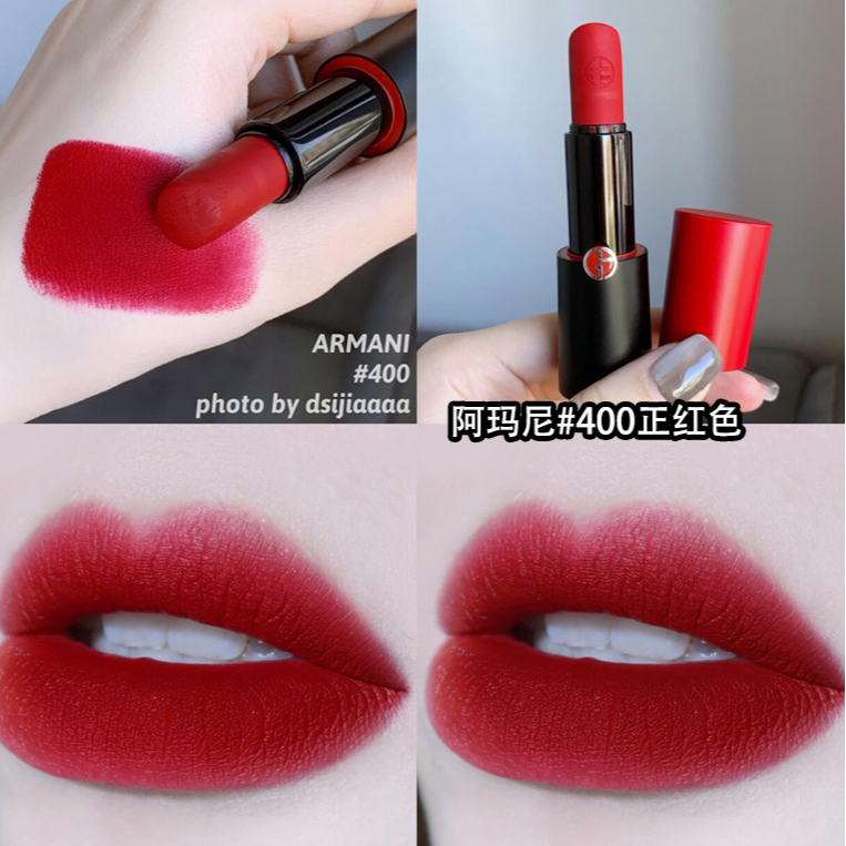 阿玛尼挚爱哑光唇膏400#4g雾面红黑管显白显色国际效期到27.11