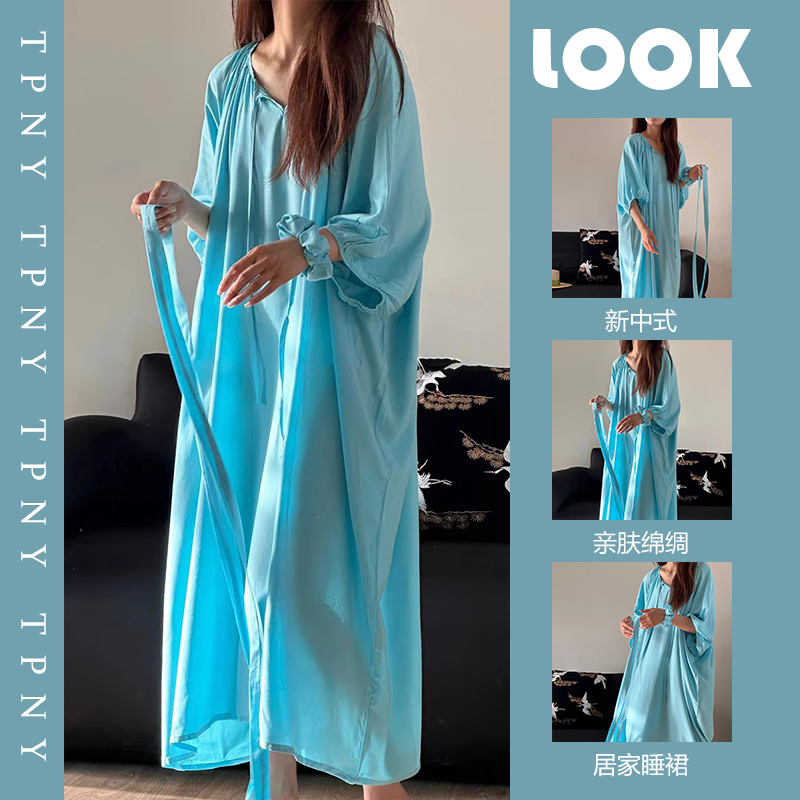 新中式高级长袖绵绸睡衣女春秋款2025新款大码睡裙家居服连衣裙子