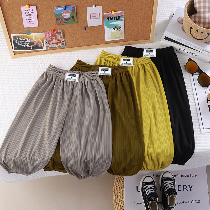 儿童夏季薄款防蚊裤男女宝休闲百搭宽松透气长裤中性款洋气纯色潮