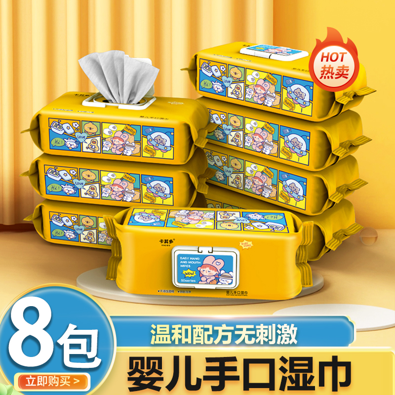 8包手口专用湿巾婴儿宝宝带盖湿巾纸家庭实惠装
