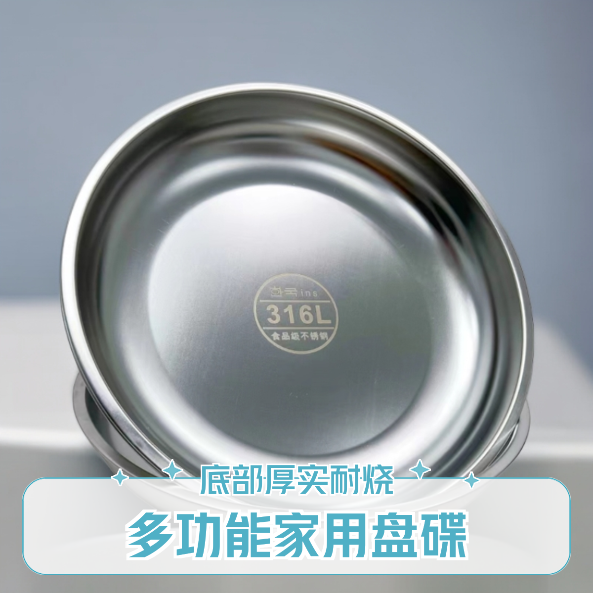 韩式不锈钢圆盘316不锈钢加厚糕盘多功能家用盘碟平盘托盘27.5cm