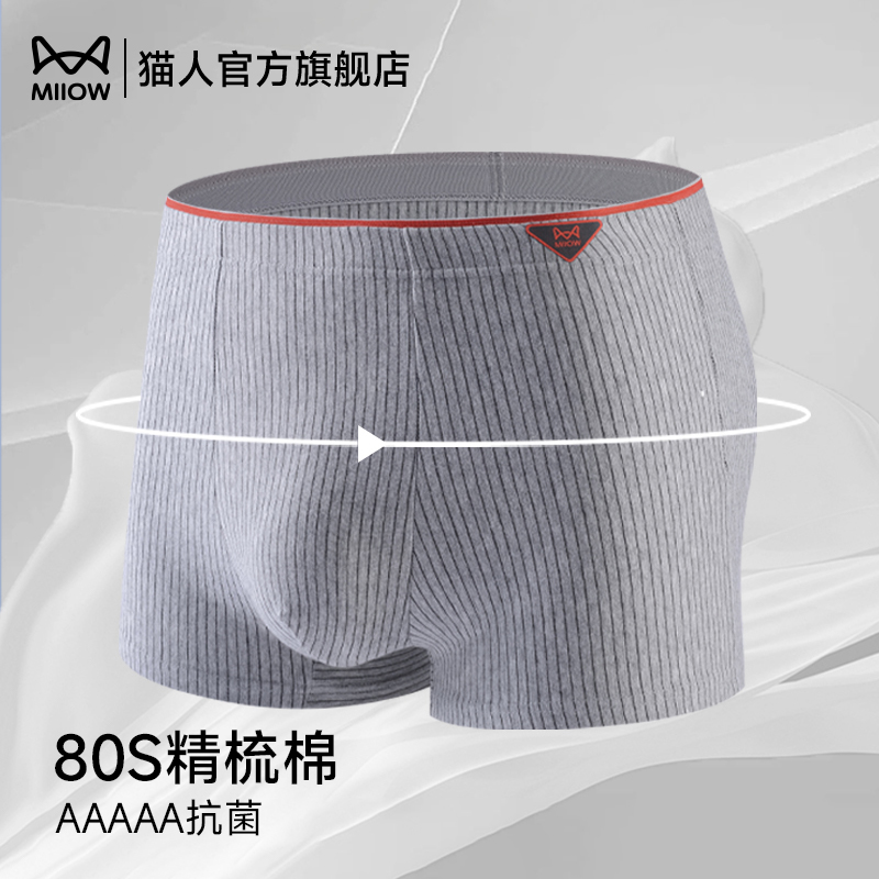 猫人80S长绒精梳棉5A抗菌底档亲肤透气时刻干爽男士薄款内裤
