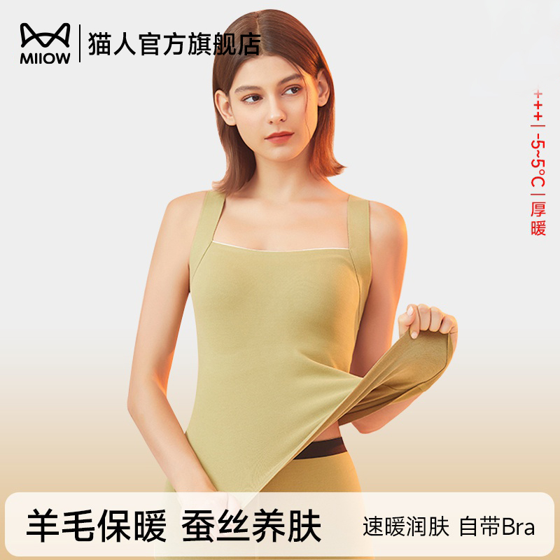 MiiOW/猫人保暖蚕丝羊毛带胸垫背心双面无痕养肤女款猫人保暖背心