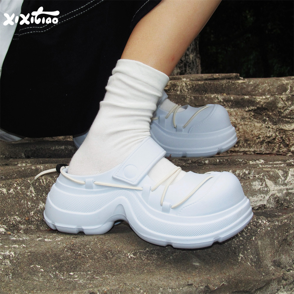 细细条 系带半拖鞋夏季时尚新款街头风增高防滑创意女士洞洞鞋ins