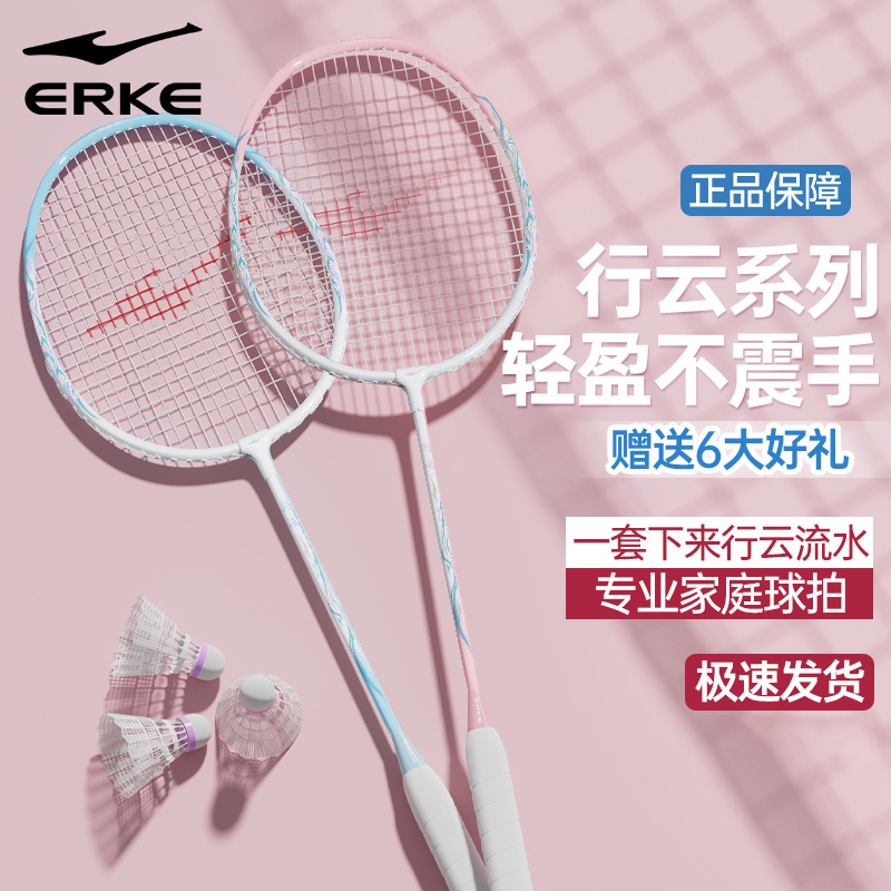 鸿星尔克羽毛球拍正品旗舰店新手初学者超轻耐打双怕对拍套装成人