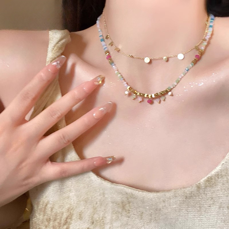 合金项链 波西米亚风串珠亮片项链女百搭小众气质叠戴锁骨链配饰