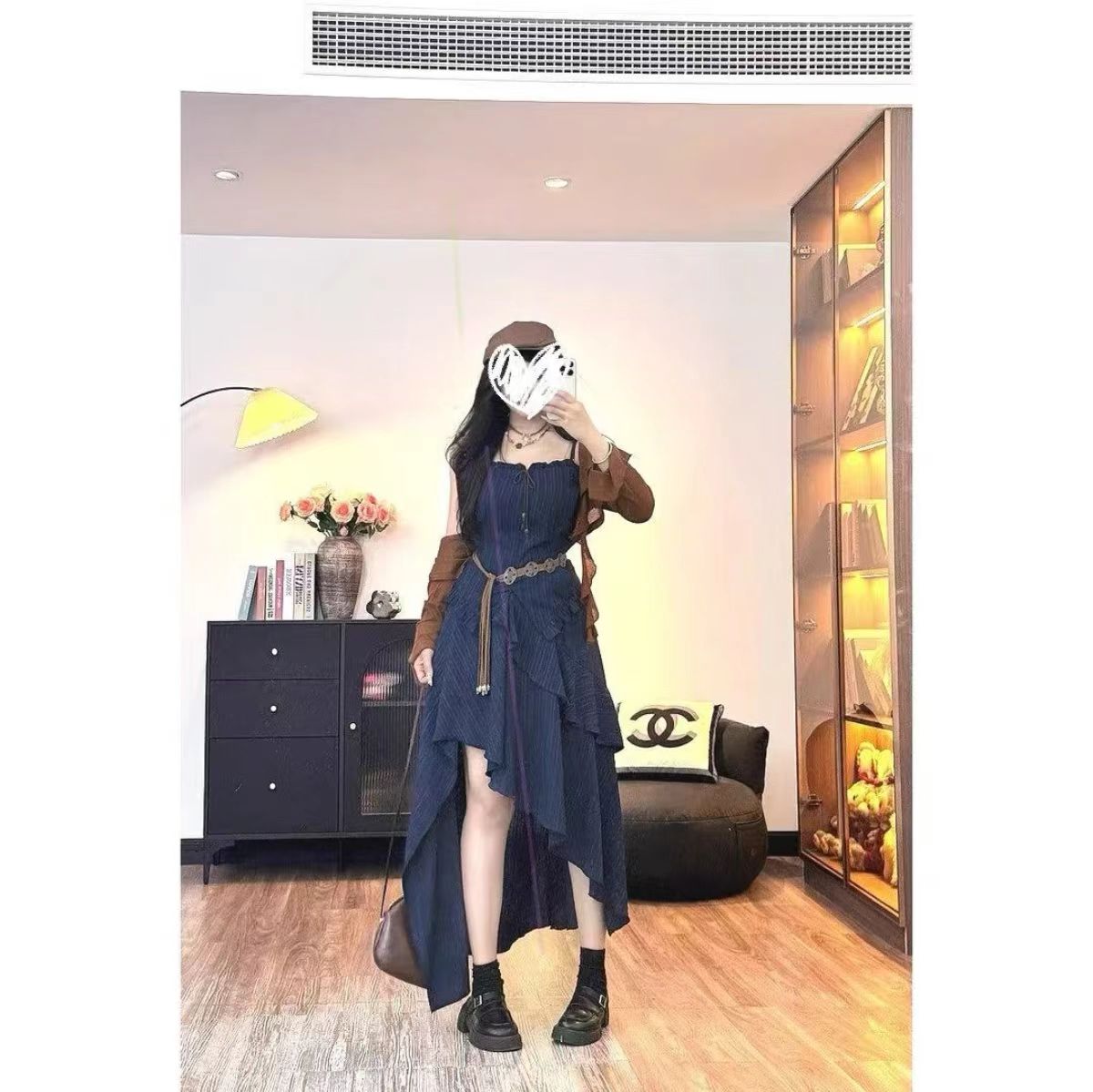 大码胖MM早秋新款辣妹连衣裙开衫两件套收腰显瘦气质时尚