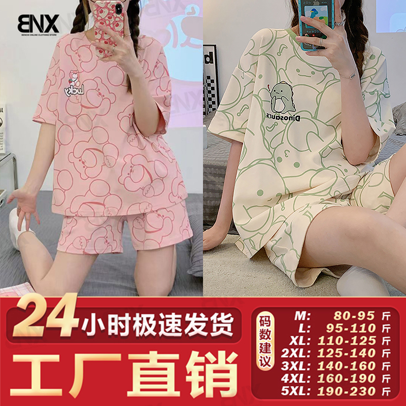 2025夏季休闲短袖套装可外穿睡衣新款舒适薄款短裤女士卡通家居服