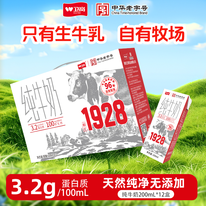 【自有牧场】卫岗纯牛奶200ml*12盒 1提