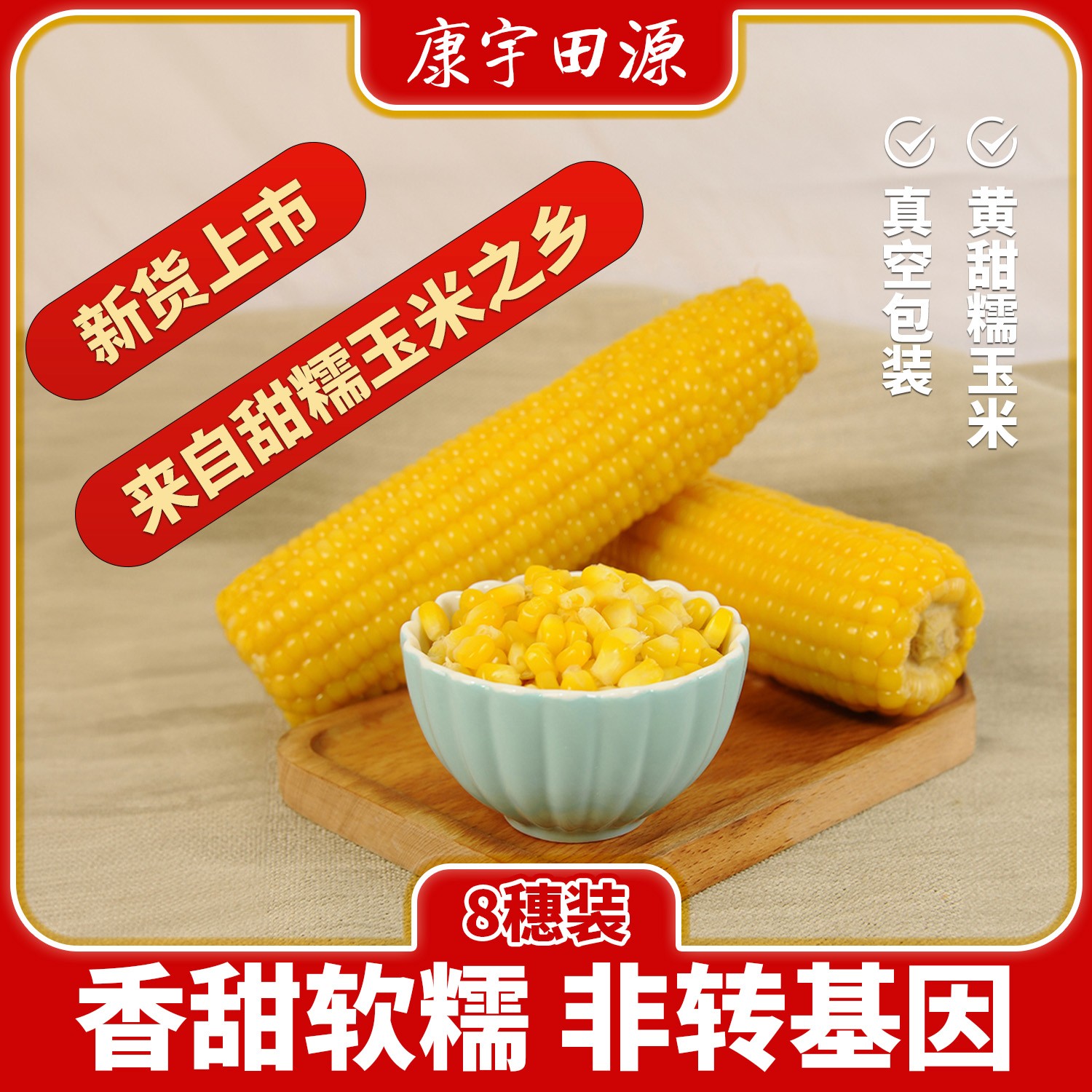 中国甜糯玉米之乡五寨康宇田源糯玉米新鲜黄玉米棒8根鲜食玉米