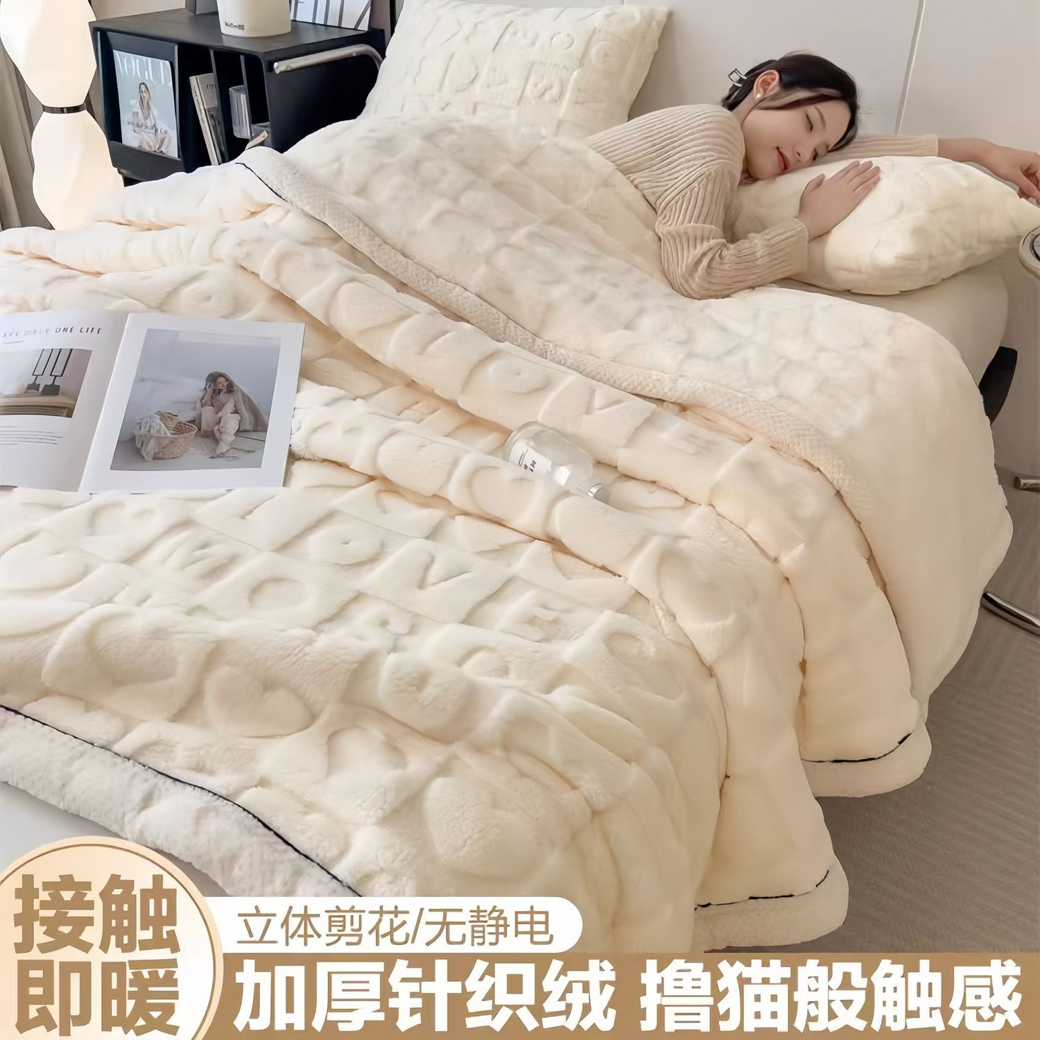 针织绒双人家用保暖盖毯宿舍毛毯法兰绒珊瑚绒毯子办公室午睡毯