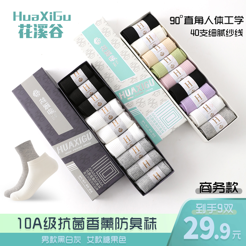 花溪谷10A抗菌【9双盒装】香薰防臭商务直角秋冬男女不臭脚中筒袜
