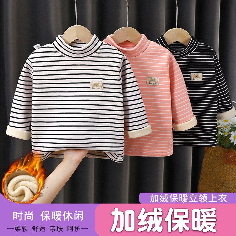 【粉丝福利】儿童加绒打底衫上衣保暖条纹儿童长袖宝宝半高领加厚