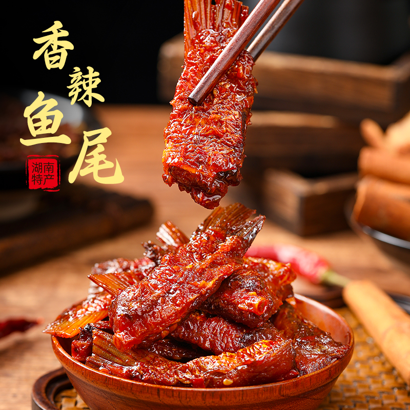 辣卤鱼尾微辣香辣爆辣鱼排湖南特产100g辣味零食追剧下酒即食鱼