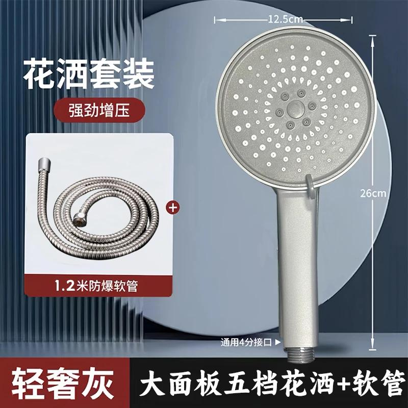 【枪灰大面板五档花洒+软管】喷雾增压花洒淋浴喷头硅胶防烫五档
