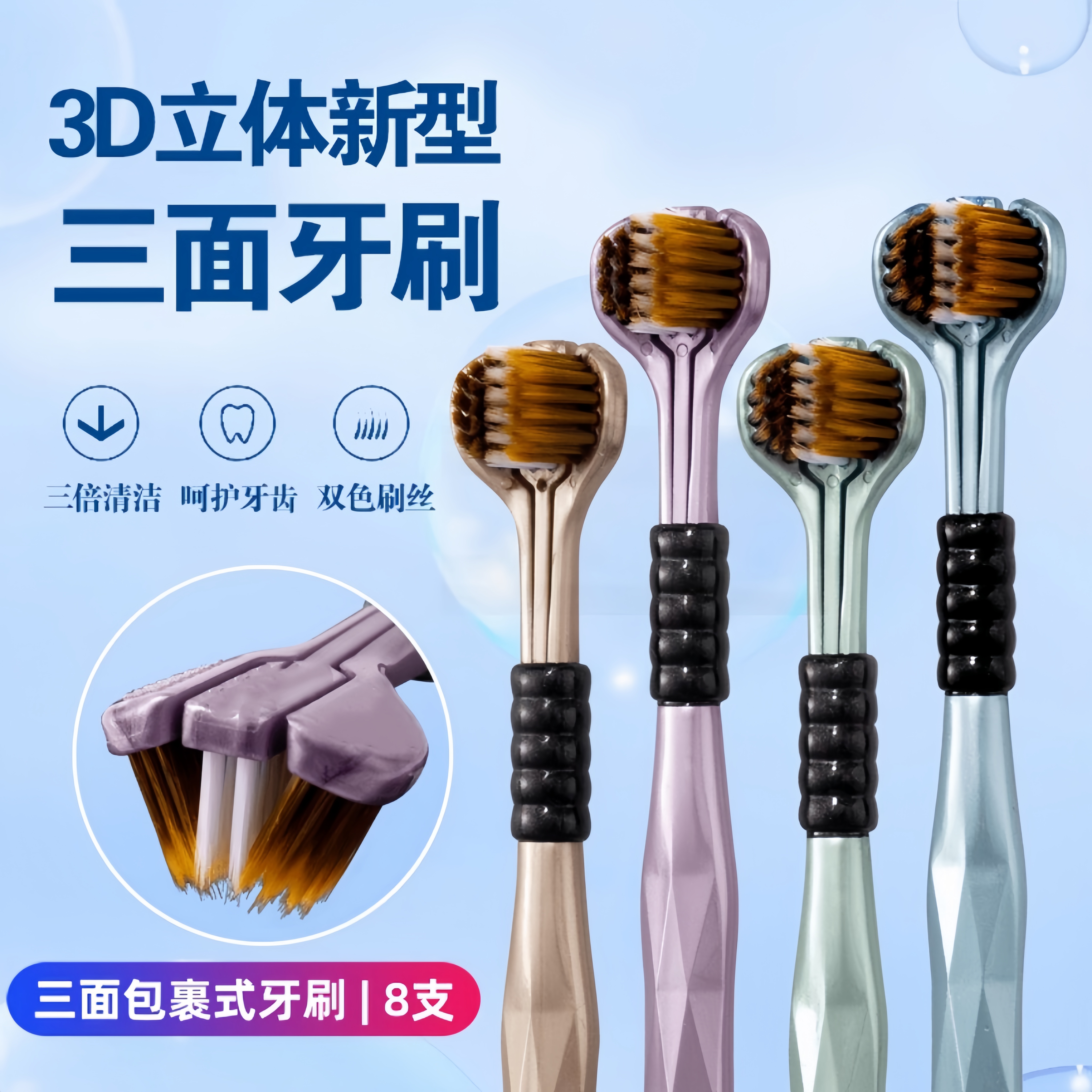 3d碳金包裹式三面牙刷情侣软毛高档清洁舌苔家庭装牙刷