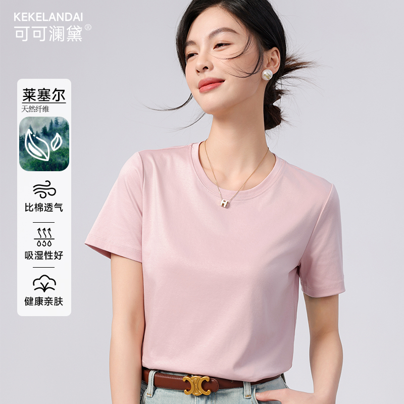 百搭莱赛尔天丝凉感短袖t恤女夏季休闲内搭透气时尚打底上衣89015