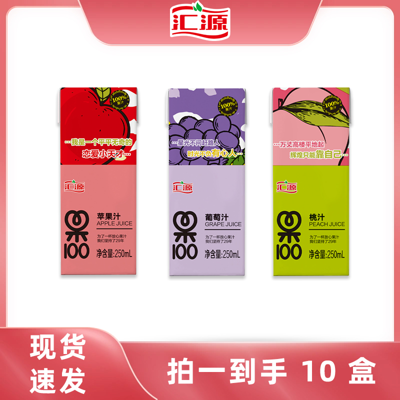 汇源果100%果汁250ml多口味可选葡萄桃苹果汁散装发货果味解渴