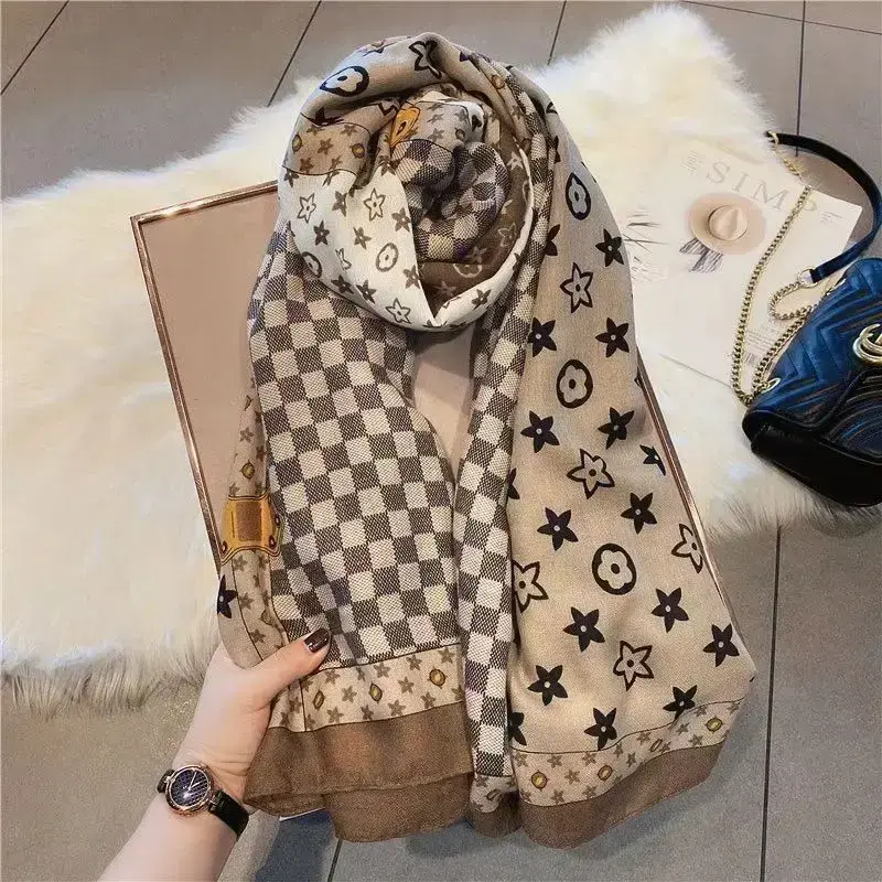 星星格围巾女秋冬新款韩版百搭薄款气质保暖披肩两用围脖