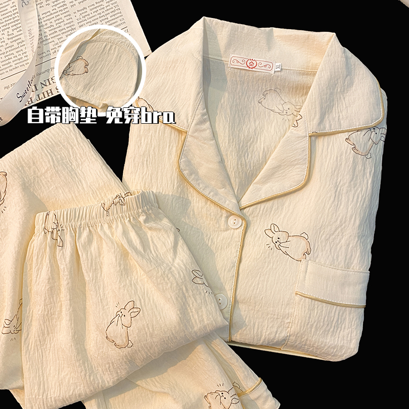 带胸垫一体卡通睡衣女秋冬季长袖长裤2024爆款宽松大码家居服套装