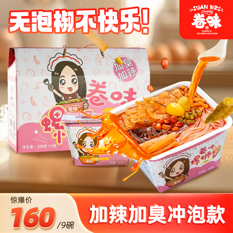 广西柳州特色卷味盒装冲泡螺蛳粉酸辣速食300*9加浓加辣整箱款