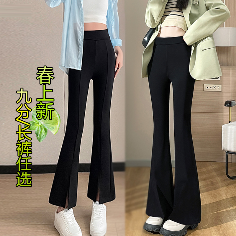 加绒加厚秋冬显瘦女裤时尚黑色微喇裤长腿裤 高腰弹力微喇叭裤子