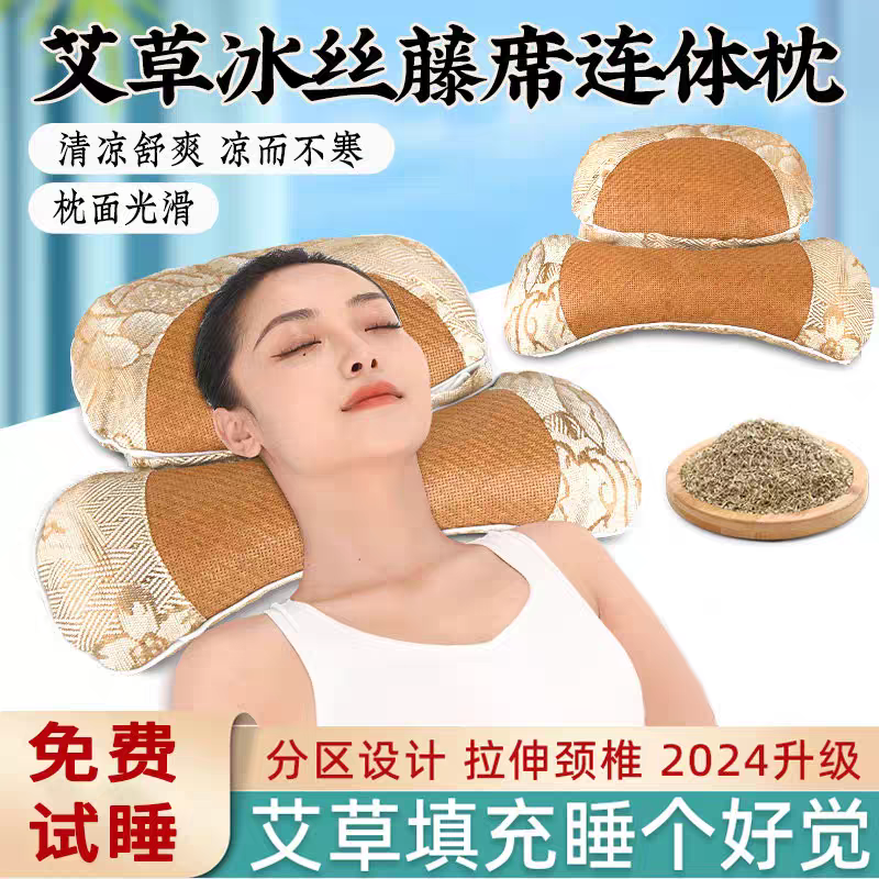 【呵护颈椎】艾草冰丝夏天凉席助睡眠软硬枕头连体艾绒枕芯透气吸汗