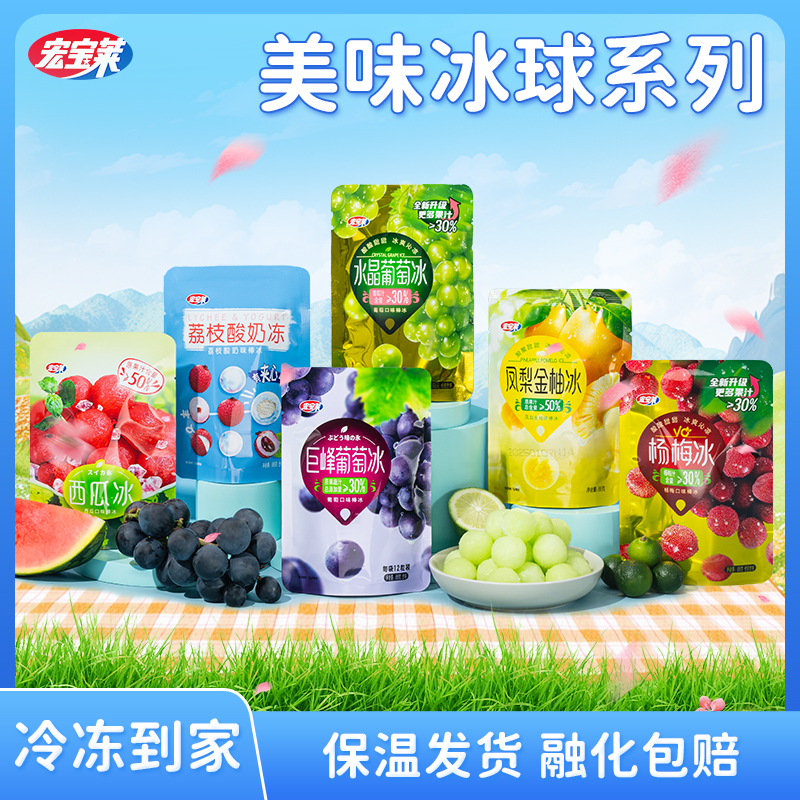 【多口味】宏宝莱冰淇淋凤梨葡萄冰球西瓜杨梅冰DIY果味冰激凌雪糕