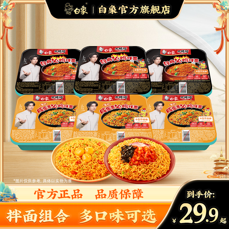 【白象】盒装火鸡面拌面经典火鸡/咸蛋黄滋味组合方便面速食6盒ZB
