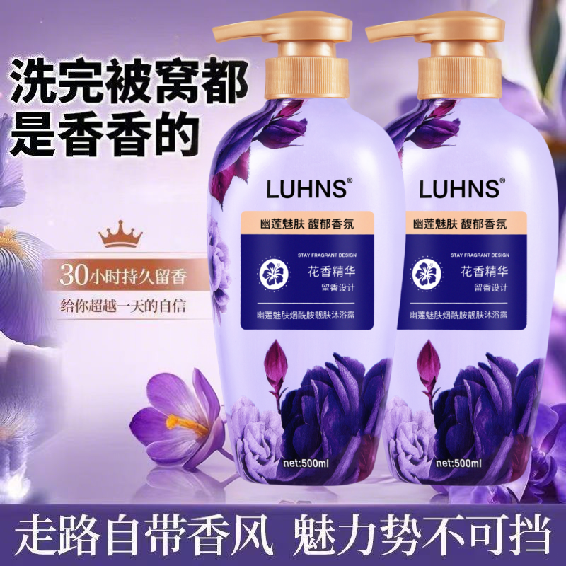 【 粉丝专享】LUHNS花香魅惑烟酰持久留香胺嫩肤沐浴露500ml/瓶