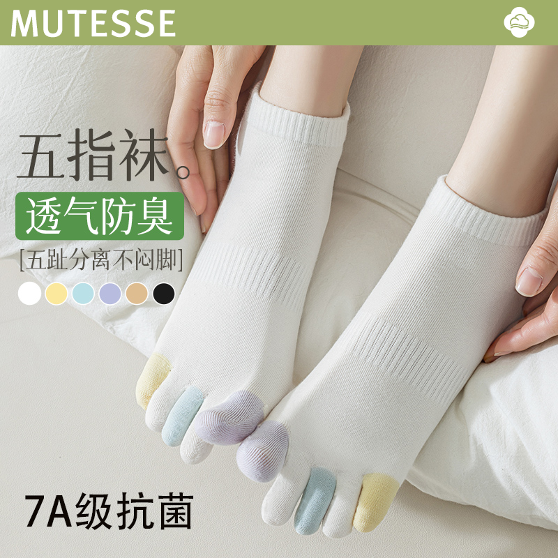 MUTESSE五指夏季女夏透气防臭分趾袜防臭吸汗春秋款短袜运动中筒