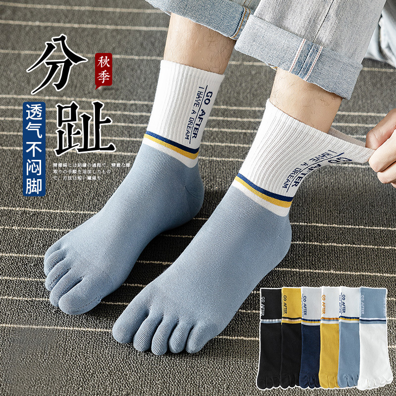 五指袜子男夏季透气分趾中筒袜夏天男生长袜夏天运动透气脚趾男袜
