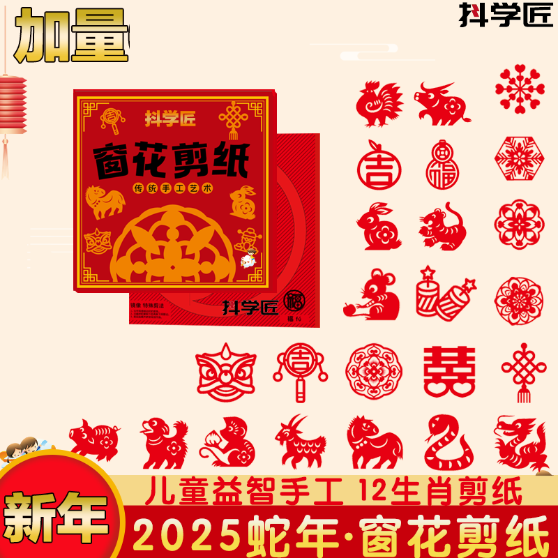 新年窗花剪纸抖学匠2025蛇年新年十二生肖剪纸diy儿童手工制作