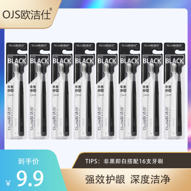 【主播福利】欧洁仕16支小头竹炭牙刷家庭装情侣高档软毛
