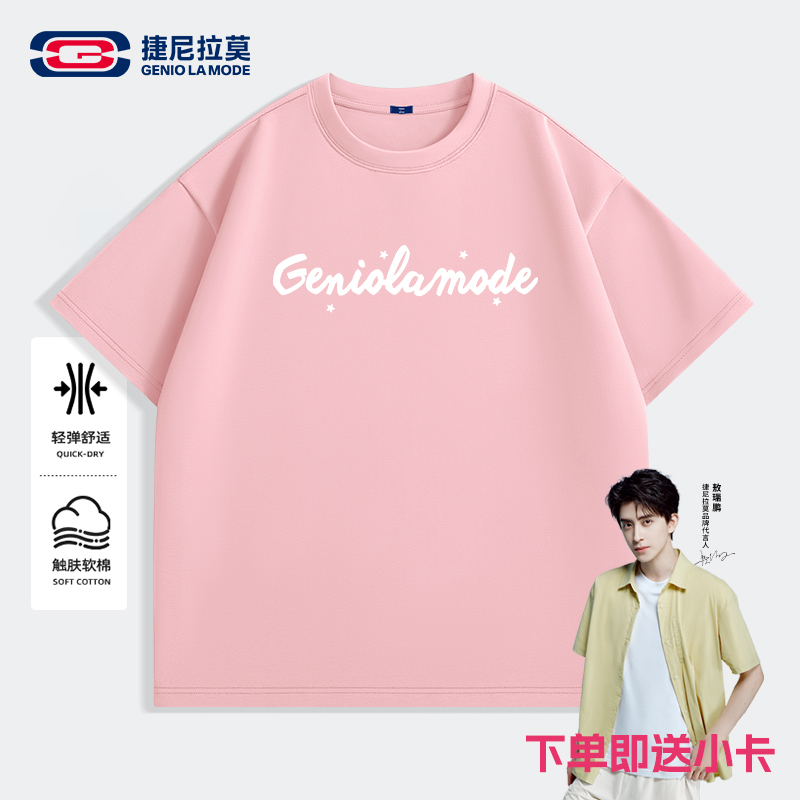 【敖瑞鹏代言】【赠小卡】捷尼拉莫经典粉色短袖男女同款T恤夏