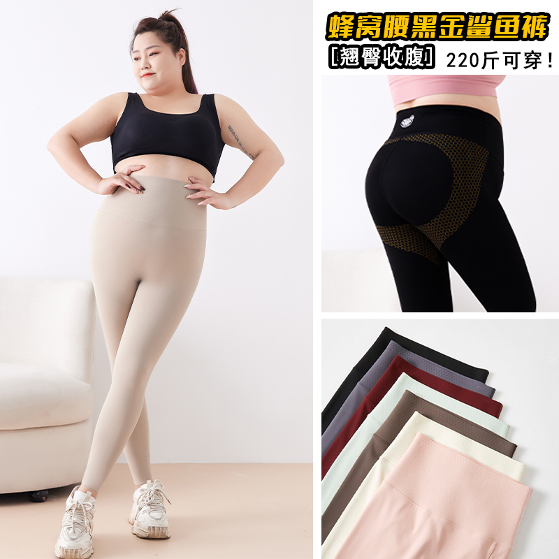 【240斤可穿】2025春季新款大码黑金芭比裤蜂窝腰收腹提臀打底裤女