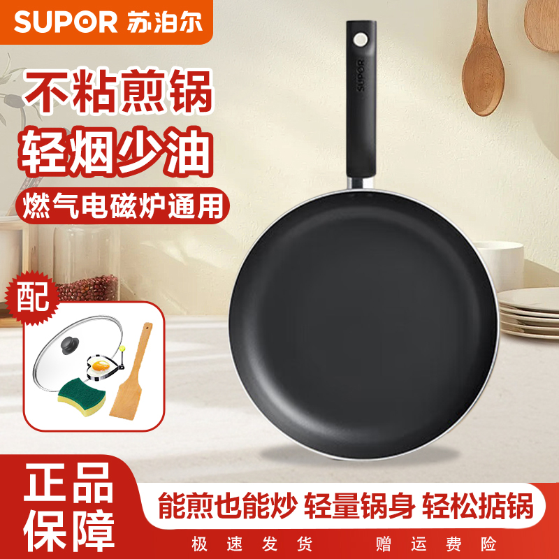 苏泊尔煎锅平底锅煎蛋家用轻烟少油炒菜锅早餐烹饪小平底锅不粘锅