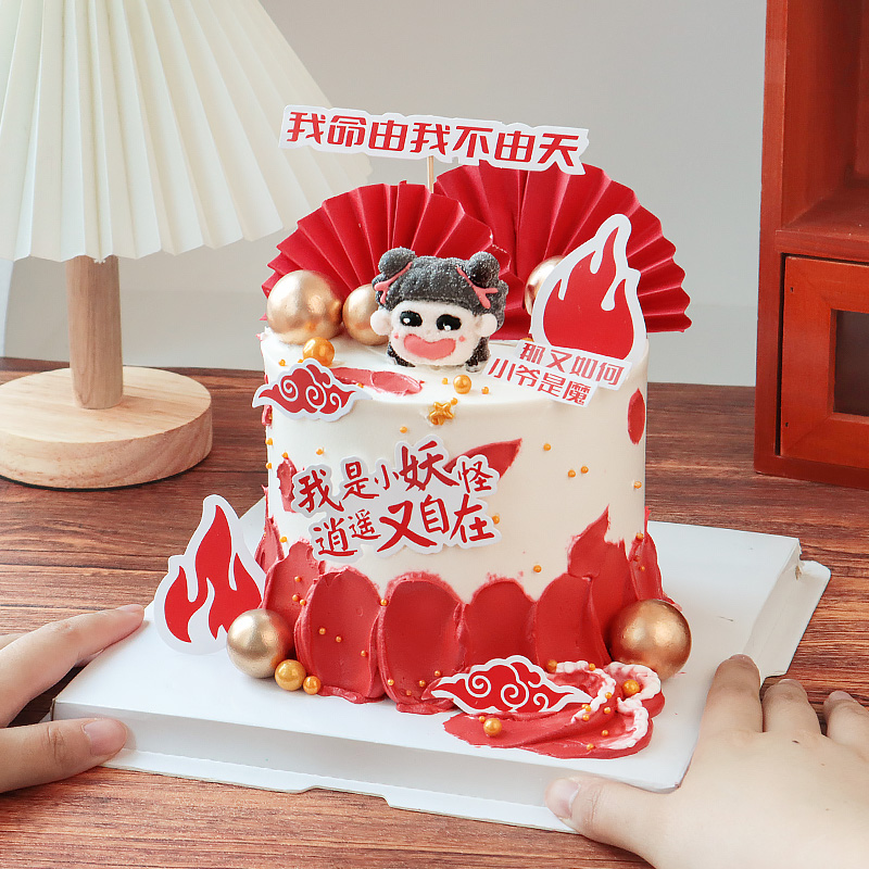 网红蛋糕装饰插牌我是小妖怪哪吒棉花糖卡通甜品烘焙插件生日装扮