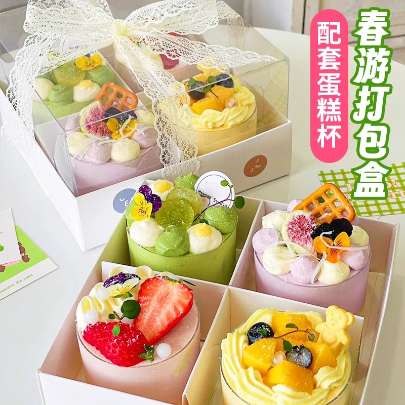 网红蛋糕装饰打包盒慕斯杯四宫格拼盘甜品盒子蛋糕盒杯子甜品盒